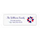 Patriotisches Rücksendesiegel mit rot-weiß-blau-blühendem Design und individualisierbarer Schrift. Ideal, um Ihre Liebe für die USA zu zeigen und Ihre Amerikanische Unabhängigkeitstag Celebration zu planen.
