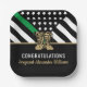 Dieses Design der Pensionierung verfügt über eine Militärflagge mit schwarz-weißen Streifen und einen dünnen grünen Streifen. Die Goldarmee steht über dem Namen des pensionierten Sergeanten, Kapitäns, Soldaten, Leutnants oder General.