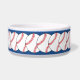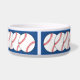 Diese patriotische Haustierschüssel kennzeichnet die roten und weißen Baseball auf einem blauen Hintergrund für ein spezielles Haustier des Sportfans. Fertigen Sie leicht den Namen besonders an oder löschen Sie ihn einfach.