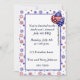Patriotische Einladung mit Feuerwerksgrenze in Rotem, Weiß und Blau und amerikanische Flagge steigt im Ballon auf. Vervollkommnen Sie für Partys Julis 4. oder des Erinnerungstages und BBQ