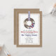 Eine Party Einladung, die eine Abbildung eines mit Monogramm Kranzes mit einem rot-weiß-blauen Farbschema zeigt. Der Kranz hat Rosetten und hängt von Zickzack Band. Hintergrund ist inspiriert. Personalisieren Sie den Kranz mit dem Brief Ihrer ersten. Personalisieren Sie den Text mit Einzelheiten Ihrer Veranstaltung.
