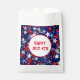Dieses Party Leckerei Gunst Tasche ist in Weiß mit einem festlichen 4. Juli patriotischen Sternenprint. Passen Sie dieses Objekt an oder kaufen Sie, wie es ist. Lizenziertes Bild