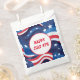 Dieses Party Leckerei Gunst Tasche ist in Weiß mit einem festlichen 4. Juli patriotischen Sternenprint. Passen Sie dieses Objekt an oder kaufen Sie, wie es ist. Lizenziertes Bild