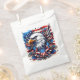 Dieses Party Leckerei Gunst Tasche ist in Weiß mit einem feierlichen 4. Juli patriotischen USA Flag und Eagle Print. Passen Sie dieses Objekt an oder kaufen Sie, wie es ist. Lizenziertes Bild