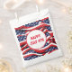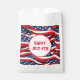 Dieses Party Leckerei Gunst Tasche ist in Weiß mit einem feierlichen 4. Juli patriotischen Fahne gedruckt. Passen Sie dieses Objekt an oder kaufen Sie, wie es ist. Lizenziertes Bild