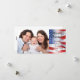 Waving American Flag und hübsches Skript schreiben vor dem weißen Farbverlauf. Classic Americana Holiday Gruß für Patrioten. Schöne patriotische Urlaubskarte zu Weihnachten. Die amerikanische Fahne liegt im Hintergrund, Fertig in traditionellem Rot, Weiß und Blau mit weißem Ober. Fügen Sie Ihren Standort und Namen hinzu und laden Sie Ihr Foto hoch. Es ist eine großartige Weihnachtsfotokarte für jeden, aber besonders gut geeignet für diejenigen, die im Militär stationiert sind.