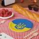 Patriotische Papiertafel mit der Flagge der Ukrain Pappteller