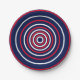 Patriotische rot-weiß und marineblau konzentrische Kreise Streifen grafische Muster moderne amerikanische Feier Papier Teller. Tolle Amerikanische Unabhängigkeitstag zu feiern, Unabhängigkeitstag, Feierlichkeiten. Karo der Erholung der Auflistung für die Abstimmung der Elemente.