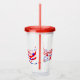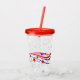 Dieser Acryl-Schuster mit seinem eigenen Deckel und Stroh hat ein Bild von roten und blauen Sternen und Bänder kunstvoll über einem klaren Schuster dargestellt. Bilder auf beiden Seiten. Länge und Strohhalm in rot. Wählen Sie Ihr Farbdeckel/Set.