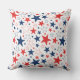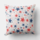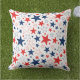 Dieses Kissen im Freien wird in einem patriotischen rot-weiß-blauen Sternenprint gezeigt, perfekt für die Feierlichkeiten vom 4. Juli. Passen Sie dieses Objekt an oder kaufen Sie, wie es ist. Lizenzierte Printwerbung