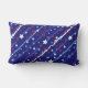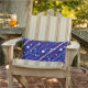 Dieses Kissen im Freien wird in einem patriotischen rot-weiß-blauen Sternenprint gezeigt, perfekt für die Feierlichkeiten vom 4. Juli. Passen Sie dieses Objekt an oder kaufen Sie, wie es ist. Lizenzierte Printwerbung