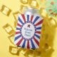 Ein patriotisches Design mit rot-weiß-blauen Sonnenburststreifen und Sternenkreis. Personalisieren Sie die Anpassung mit einem Namen oder anderen gewünschten Informationen, indem Sie den in der Entwurfsvorlage angezeigten Beispieltext ersetzen. Es gibt viele Verwendungsmöglichkeiten für diesen Artikel, darunter Zuhause-Party für Militärmitglieder, Wiedersehen, Party vom 4. Juli, Geburtstage und vieles mehr.