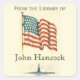 Individuell gestaltbare patriotische Namensaufkleber für Bücher mit der amerikanischen Flagge und der Freiheitsstatue. Das Schreiben sagt: "From the Library of" und hat einen benutzerdefinierbaren Namensbereich in altmodischen Schriftart.