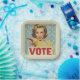 Ein Retro-Poster mit einer glamourösen Frau mit blonden Haaren und kühlem rotem Lippenstift, das an das Button-up der 1950er Jahre erinnert. Sie zeigt direkt auf den Betrachter in einer Pose, die den ikonischen Rekrutierungsplakaten von "Uncle Sam Will You" ähnelt. Hinter ihr steht ein sternblauer Hintergrund, und das Wort "STIMME" wird unten in großen, fett roten Buchstaben sichtbar angezeigt. Das Gesamtkonzept ruft ein Gefühl patriotischer Dringlichkeit hervor und fördert die Bürgerbeteiligung.