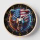 Ein majestätischer Bär, der stolz eine amerikanische Fahne als Headpiece trägt und Stärke, Freiheit und Patriotismus verkörpert. mit Golduhrzahlen