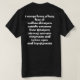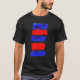 Dieses dunkle T-Stück hat einen Entwurf der roten und blauen Streifen auf der Front, und der Text auf der Rückseite sagt, dass" ich von einer langen Linie der Kaffeetrinker, der Mob rousers, der freien Denker, der starken Frauen, der Veterane und der Gewerkschaftsmänner und der Immigranten komme