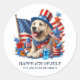 Patriotischer Hund Top Hat Red Blue Stars Streifen Runder Aufkleber