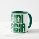 Patriotische Kaffee-Tasse Saudi-Arabiens Nationalflagge mit der reizvollen Aufschrift "Saudi-Arabien", die mit dem Muster und den Farben der Nationalflagge verziert ist. Das Design wird mit den beiden doppelten dünnen Linien in den Farben oben und unten auf der Tasse beendet. Die Farbe innerhalb des Bechers und am Bechergriff ist perfekt mit der Erholung der Farben abgestimmt. Hier ist der fantastische Begleiter für die tägliche Tasse Kaffee. Charmantes Design, schöne Farben und das einzigartige Aussehen machen es zu einem perfekten Geschenk für jeden Anlass. © 2022 CountriesOfTheWorld