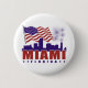 Patriotischer Knopf, der die amerikanische Flagge stolz fliegt über das Miami, Florida im Stadtzentrum gelegene Skyline kennzeichnet.