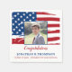 Patriotische amerikanische Flag Military Graduation Party Napkins. Gastgeber Ihre patriotische Graduiertenparty mit dieser patriotischen Graduiertenparty unter der Flagge der USA. Die US-amerikanische Fahne modernes Rot-Blau-Design mit Graduate Foto.. Diese Abschluss-Servietten eignen sich auch für militärische Party in den Ruhestand. Sehen Sie sich unsere Kollektion an, um Einladungen, Geschenke, Gastgeschenke und Vorräte für die militärische Graduierung zu finden. COPYRIGHT © 2021 Judy Burrows, Black Dog Art - Alle Rechte vorbehalten. Patriotischer Militär-Amerikanischer Flaggenstaat Abschluss Napkins