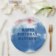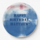 Ein phantastisches 4. Juli Party oder ein patriotisches Geburtstagsfest mit diesen personalisierten Tellern. Diese Teller sind mit einem Hintergrund in Rot, Weiß und Blau im Stil der gefärbte Krawatte ausgestattet, mit einer eigenen, navy blauen Schrift. Sie sind ideal für Partys, die Veteranen, zurückkehrende Soldaten und aktives Militär ehren.