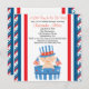 Kracher u. Feuerwerke! Es gibt ein Baby auf der Weise!! Fangen Sie Ihre Feier mit dieser entzückenden Babypartyeinladung an. Sie hat rotes US Flagge-, weiße und Blauegrenze hinunter jede Seite mit dem Mitteweiß. In der unteren Mitte ist ein niedliches Baby in einem blauen und weißen Fass, das einen patriotischen Hut trägt und die amerikanische Flagge in jeder Hand hält. Personifizieren Sie mit Ihren Partyinformationen. Karo heraus die anderen Entwürfe und die Farben, die wir anbieten. ©JW Illustrationen