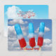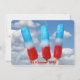 Rote, weiße und blaue Popsikel mit sommerlichem Himmelshintergrund für die Party Einladung im Sommer.