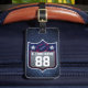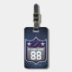 Zeigen Sie Ihren amerikanischen Stolz mit diesem rot-weiß-blauen Glitzer-inspiriert Gepäckanhänger. Ein kühn silberweißes Schild beherbergt einen Glitzer Fußball und Sterne, Set vor einem königsblauen Funkelhintergrund. Personalisieren Sie Ihre Daten mit Ihrem Namen und Ihrer Nummer. Ideal für Reisen am 4. Juli, Teamfahrten oder alle, die Fußball mit patriotischer Drehung Lieben.