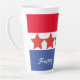 Set deinen Urlaubstisch mit dieser festlichen patriotischen rot-blauen 4. Juli latte Tasse. Diese moderne Tasse des Unabhängigkeitstages zeichnet sich durch ein modernes Design der US Flagge aus. Kaufen Sie wie gezeigt mit dem Urlaub Gruß oder personalisieren Sie mit Ihren eigenen Worten.