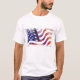 Dieses patriotische Männer's Shirt ist in Weiß gezeigt, dieser T - Shirt hat kurze Ärmel und eine Crew Nacken mit einer großen Grafik der US-Flagge. Kundenspezifisch anpassen oder kaufen, wie es ist.