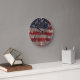 Patriotisches US-Flaggensegment über rustikales, g Runde Wanduhr