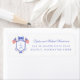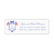 Dieses Rücksendeetikett zeigt ein patriotisches Wappen mit US-Flaggen. Sie können Ihre Monogramm-Initialen hinzufügen. Ihre Namen sind in einer Schreibschrift und die Adresse in Großbuchstaben.