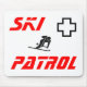 " Ski-Patrouille" geschrieben, mit einem weißen Kreuz und Skifahrerbild.