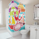 Kinder Duschvorhang mit einem Thema Wassertransport bietet Segelboote, ein U-Boot, Schlepper, Boot und Anker mit diagonalen Streifen, Polka Punkte und karierte Designs auf einem blauen Wavy Ozean!