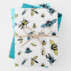 Insekten, von fliegenden Kreaturen der Natur (Bienen, Libellen, Fliegen, Gnaten usw.) und krabbelnde Arten (weibliche Käfer, Käfer und andere Tiere) in blau und gelb auf festem Weiß und mit hellen und dunkelblauen Hintergrund. Ideal für Kindergeburtstage oder DJ-Schulprojekte.