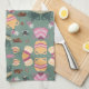 Patterned fabric featuring colorful teapots, cups, geschirrtuch