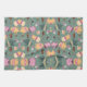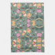 Patterned fabric featuring colorful teapots, cups, and snowflakes on a green background; shown in horizontal and vertical orientations. Playful and vibrant.