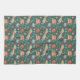 Patterned fabric with whimsical foxes, deer, trees, and leaves on a muted teal background. Two orientations: horizontal and vertical. Cozy, woodland theme.