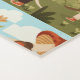 Patterned image of cartoon characters in a forest setting, repeated vertically. Features smiling kids with hats, animals, and trees in warm, playful tones.