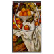 Paul Cézanne - Äpfel und Orangen Der französische Maler Paul Cezanne schuf 1899 seine "Äpfel und Orangen". Das berühmte Gemälde Cezanne besticht durch eine schöne Auswahl an roten und gelben Äpfeln und hellen, frischen Orangen, die sorgfältig auf einem Tisch angeordnet sind. Unter der Frucht befindet sich eine knusprige, weiße Kleider.