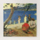 Paul Gauguin. Obstträger in Turin Cove oder Seaside II. Sommerlandschaft. Eine Gruppe von Menschen sitzt am Ufer des blauen Meeres. Eine Gruppe von Leuten geht über den Hang zum Wasser. Bäume wachsen im Vordergrund. Im Hintergrund ist eine kleine Stadt zu sehen. Reproduktion berühmter Kunstbilder im öffentlichen Bereich.