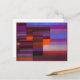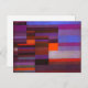 Paul Klee Feuer im Abend Postkarte. Ölmalerei auf Leinwand aus dem Jahr 1929. Eines der schönsten Bauhaus-Gemälde Paul Klees, das Feuer im Abend, ist eine wunderschöne Pastiche aus Blau, lila, Orange und Rot. Ein hübsches Kunstgeschenk für die Fans von Paul Klee, abstrakte Kunst und Bauhaus-Gemälde.
