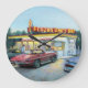 Eine nostalgische Uhr des preisgekrönten Künstlers Paul McGehee. Dieser frühe Abend der Dämmerung von einem beliebten gefrorenen Kustgarten-Shop von gestern bringt die Erinnerungen der sommerlichen Nächte zurück...Hier wurde ein wenig Himmel unter den Sternen serviert. Diese FUN-Uhr ist in drei beliebten Größen erhältlich und eignet sich perfekt für Ihr Spielzimmer oder Ihre Bar.