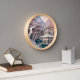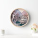 Eine hübsche Imitat-Tapete-Ausschnitt-Landschaft Wanduhr mit Bergen, Pavillon und Bäumen.