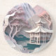 Ein hübsches Imitat, das die Landschaft rund um den Sandstein Untersetzer mit Bergen, Pavillon und Bäumen ausgeschnitten.