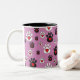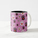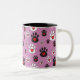 Paw druckt mit roten Herzen auf rosa Zweifarbige Tasse