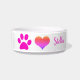 Paw druckt Niedliche Heart Monogramme Pink White O Napf
