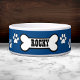 Super niedliche, personalisierte, blaue und weiße Hundeschüssel.