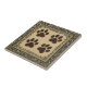 Artwork von vier niedlichen Pfotendrucken. Feiern Sie Ihre Liebe für Haustiere mit dieser zauberhaften Zierplatte mit vier bezaubernden Pfotendrucken. Gerahmt durch eine elegante, verzierte Grenze in einem aquamarinen und metallisch-edlen Gold, besticht der zentrale Platz mit einem warmen, gesprenkelten cremefarbenen Hintergrund, der die dunkelbraunen Pfotendrucke schön unterstreicht. Perfekt als einzigartiges Akzent, als Schrittstein in einem Garten oder als nachdenkliches Geschenk für alle Tierliebhaber. Es ist eine herzzerwärmende Hommage an die Freude Tiere bringen, geeignet für Ihre Wohngestaltung Display drinnen oder draußen.