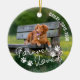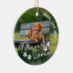 Hundeschmuck mit einem Foto Ihres geliebten Hundes, einer auf beiden Seiten. Fügen Sie den Namen Ihres Hundes und Jahre leben in einem gekrümmten modernen Text. Für immer geliebt am unteren Ende des Hundes Foto-Ornament mit kleinen Hundepfoten schmückt. Ehre deinen Hund, der mit dieser Gedenkstätte für immer verstorben ist, liebte Ziergegenstände, die mit Fotos deines Hundes und ihrem Namen, Geburtsjahr und Jahr des Vergehens personalisiert sind.